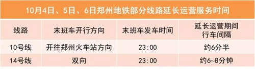 10月4日至6日,鄭州地鐵相關(guān)線路延長運(yùn)營服務(wù)時間,請您留意“鄭州地鐵”微信公眾號。