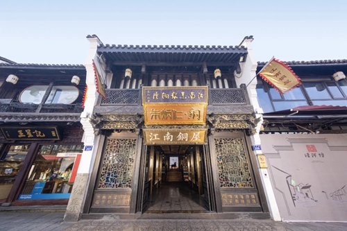 以朱炳仁團隊打造的銅屋系列為例:入駐亳都·新象的“中原銅屋”是其全國第四家、華中第一家銅屋。建筑內部以超高、超寬的銅板工藝打造出“銅盒子”視覺焦點,磚木結構搭配著銅與玻璃的碰撞,產生時空交錯的美感。“中原銅屋”整體風格和中原民居相適配,當訪客的指尖掠過帶有紋飾的銅器,恰似完成一場跨越三千年的文明對話——要知道,商城遺址曾出土過杜嶺方鼎等商代青銅文明的巔峰之作,這份地域文化根脈在此得到了呼應。