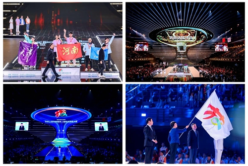 華燈璀璨,掌聲如潮。9月23日晚,當348名獲獎選手高舉隊旗與獎章,當大賽會旗在璀璨的舞臺上完成交接傳遞,當良渚文化和人形機器人在現場8000余名觀眾的歡呼聲中共舞……中華人民共和國第三屆職業技能大賽閉幕式在鄭州奧體中心體育館完美落幕!